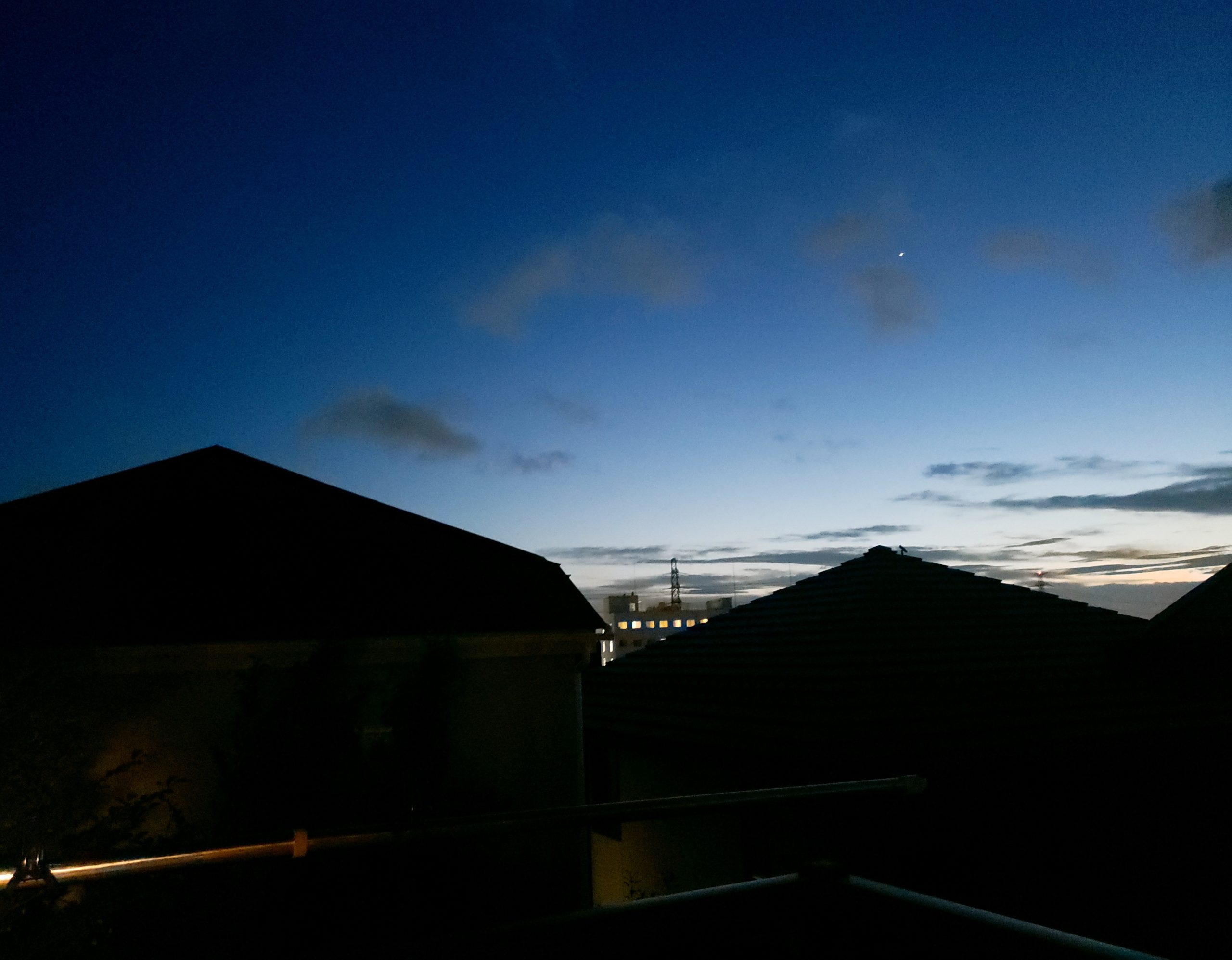 作品右上「ベランダの景色」のベースとなる写真。「ベランダの洗濯物をしまうとき、普段と同じ時間のはずが いつの間にか空は いつもより暗く澄んでいた」。宇野さんがそのときどきに感じた思いを作品に込めて(写真=本人提供)